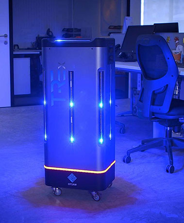 TREX Is the world's first便攜式 UV-C LED 消毒設(shè)備,省時Efficient,保護環(huán)境,并可在狹窄的區(qū)域進行消毒。TREX 可到達機器人到達不了的地方。借助緊湊的設(shè)計和輪式底盤,TREX 被設(shè)計成一種高效、便攜式的消毒裝置。